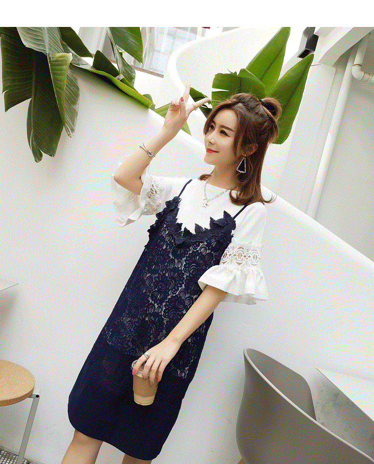 Korean Lotus Leaf Crochet Hollow Short Sleeved Dress Ladies