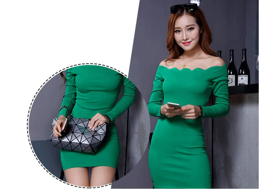 (Long Sleeve) Sexy Waves Word Shoulder Strapless Wild Waist Package Hip Step sk